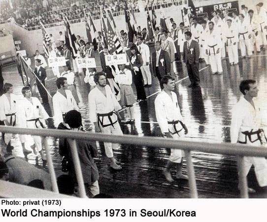 Einmarsch der Nationen bei der ersten WM 1973 der neu-gegründeten World-Taekwondo-Federation: