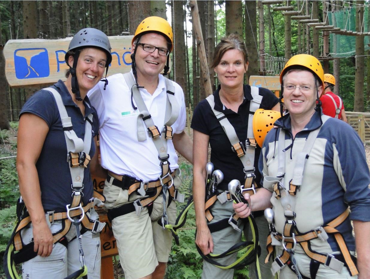 Die „olympische Familie“ Nordrhein-Westfalens trifft sich regelmäßig. Jüngstes Arbeitstreffen war in der Sportschule des Fußballverbandes Mittelrhein. Natürlich begrüßte dessen Präsident, Alfred Vianden, die prominenten Gäste – allen voran die Sprecherin der Botschafter der Sportstiftung NRW, Ulrike Nasse-Meyfarth. Die hätte gern noch mehr als die drei anderen früheren Spitzensportler im Kletterwald dabei gehabt.
