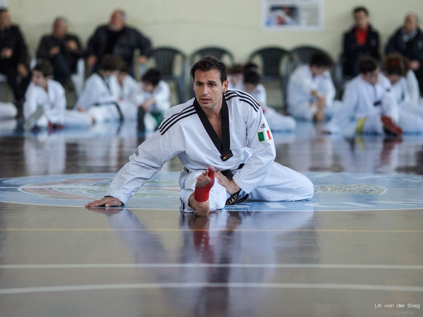 Am 08.02.2015 beehrte der Taekwondo-Olympiasieger des Jahres 2012 Carlo Molfetta die Leistungssportler der italienischen regionalen Federation Puglia mit einem Techniklehrgang der Extraklasse. Aufgeteilt in zwei Gruppen konnten am Morgen als erstes die Senior-Atlethen vom reichhaltigen Erfahrungsschatz des charismatischen Taekwondoin profitieren. In den praktischen Übungsteil flossen die aktuellen Tendenzen (Stichwort: cut kick) des Wettkampftaekwondos auf Weltklasseniveau mit ein. Spielerisch aber nicht weniger praxisnah ging es am frühen Nachmittag für Kindergruppe (bis 10 Jahren) weiter. Den Abschluss des Tages bildete die Ehrung von Atlethen und Trainern für herausragende Leistungen, erbracht im Jahr 2014, durch den Präsidenten der Federation Puglia Martino Montanaro.