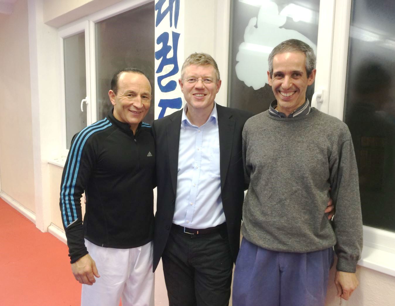 Trainer und Inhaber Özer GÜLEC mit Dr. Thomas Fabula und Alfred Castanio, dem 1. Vorsitzender des Vereins. Diskussion gemeinsamer Projekte mit Cheftrainer und Inhaber Özer GÜLEC und Alfred Castanio, dem 1. Vorsitzender des Vereins Tae Kwon Do Özer e.V. u.a.