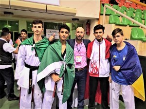 The new national head coach of Saudi Arabia (KSA) Aziz Acharki was lucky to build very fast – within approx. a half year – a successful new Taekwondo Team. On one of their first international championships they succeeded to gain a GOLD medal won by the young Saudi Mohammed Alsowaiq.
